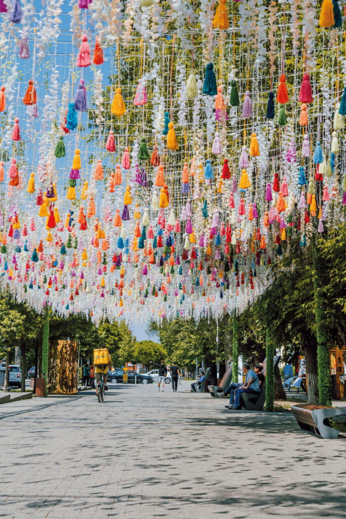 Almaty reminds one of European cities, and the best place to get a feel of this is the tree-lined Arbat, the pedestrian part of Zhibek Zholy Street. Named after the famous street in Moscow, it throngs with buskers playing lively music, colourful arches, fountains, skateboarders, and a thriving open-air café scene for people-watching.