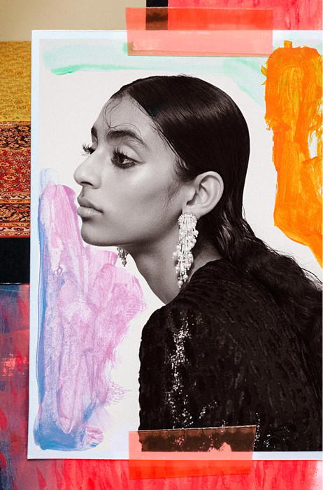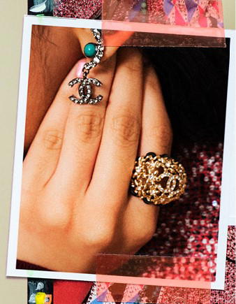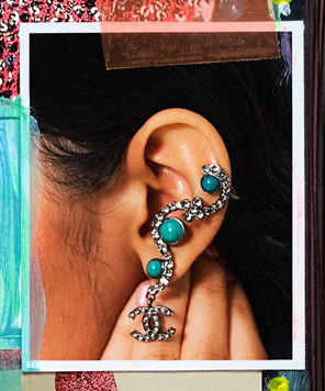 Florals have always been a big part of Chanel, dainty camellias rendered in fabric engulfed a camisole top, larger camellias were abstracted in a Warholian manner on a wooden beaded skirt, and delicate lace pieces embedded with floral motifs came coated, embellished and embroidered. Another beloved symbol the lion, adorned chunky gold necklaces paired with colourful sautoirs and swooping gold chains. The layering of jewellery wasn’t limited to necklaces, bejewelled vests in metal, chain and pearls glimmered on a bare bodied torso or were slightly obscured under a cloak of lace. Crystal chainmail collars, ties and cuffs closed the show adding drama and precious sparkle to a duo of all-black looks.