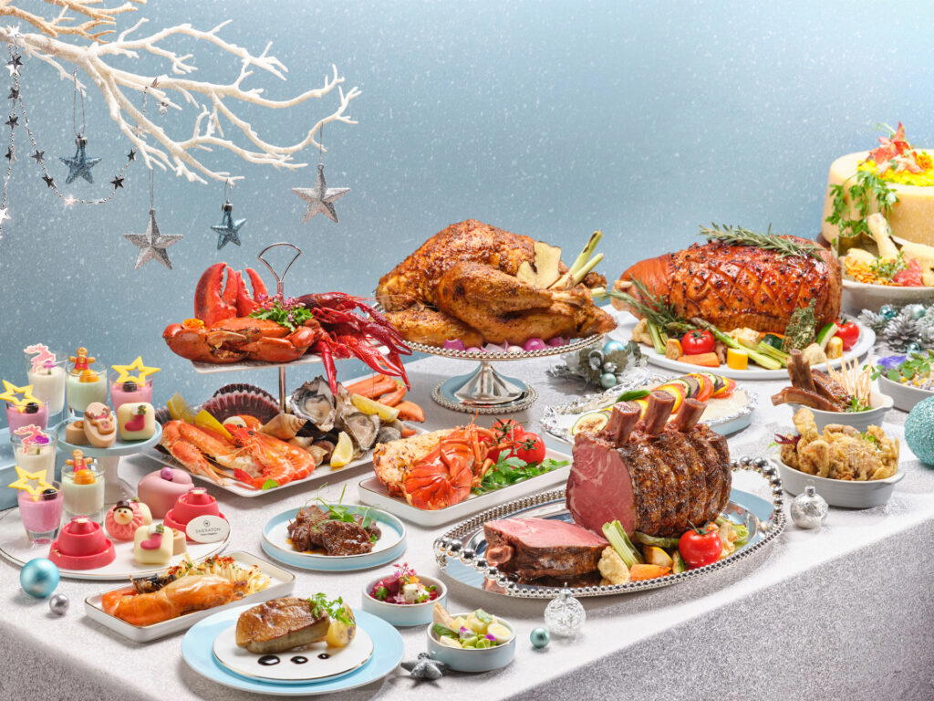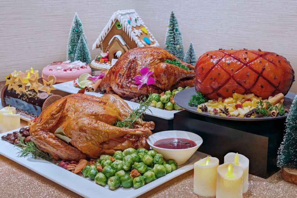 On Christmas Eve and Day, make a beeline here for its scrumptious spread of salads, cold plates, seafood, artisanal cheese, charcuterie board, and a live station featuring the refreshing Coconutty Prawn Cocktail. Satiate cravings with the comforting Truffle and Spinach Mac and Cheese, Saffron Risotto, and Porcini Mushroom Cream Soup. Other must-tries include a Whole-roasted Midwestern Butterball Turkey, Maple-glazed Dingley Dell Pork Ham. For a satisfying finale, check out seasonal treats like Bûche de Noël and Christmas Pudding flambéed with brandy à la minute.
