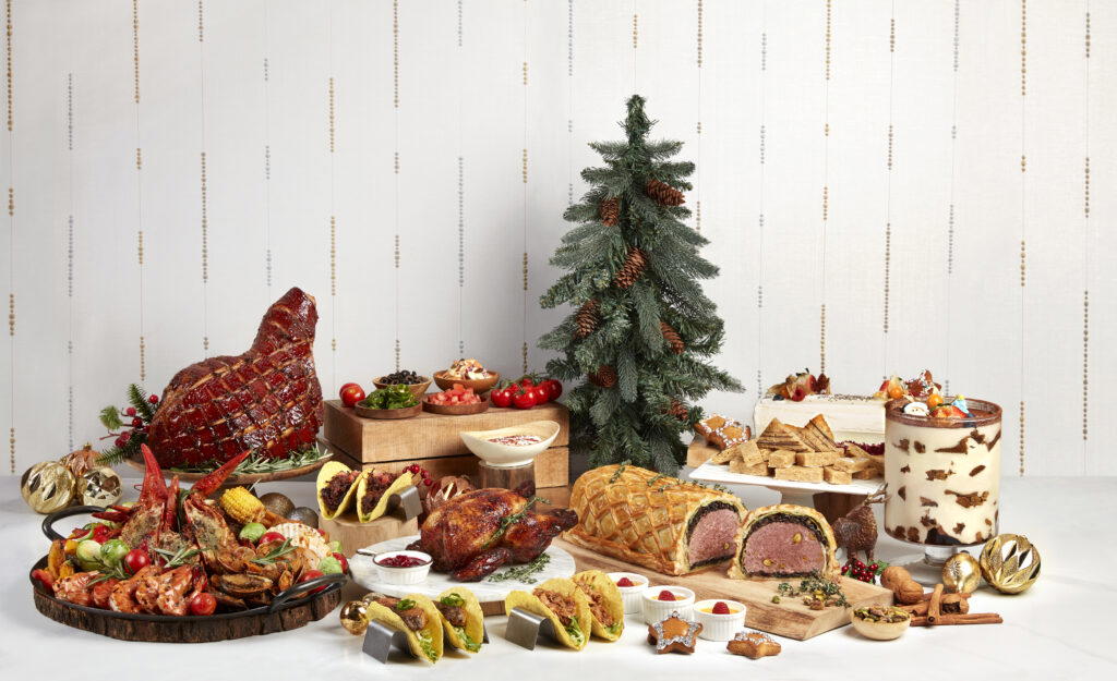 For a Penang and Peranakan twist to your Christmas festivities, tuck into Signature Nonya-style Turkey Breast with buah keluak sauce, alongside other festive meats at the chef’s carving station. Seafood lovers can opt for the indulgent Lobster Penang Hokkien Mee. Other highlights include slow-roasted Beef Sirloin and a rotating selection of festive desserts. From 1 December 2024 to 5 January 2025, diners enjoy 20 percent off when paying with DBS, OCBC, HSBC, or UOB credit cards.