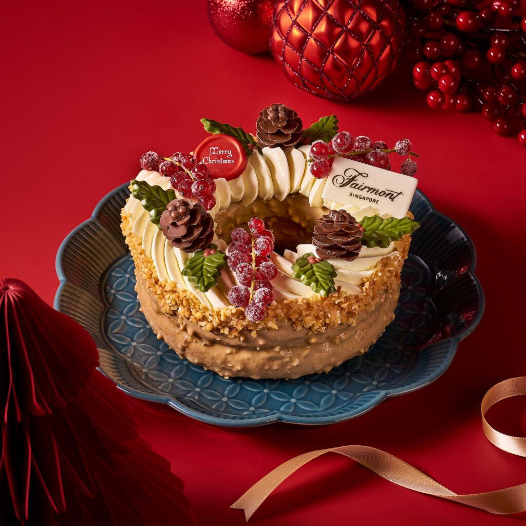 The Fairmont Christmas Wreath combines caramel apple cinnamon, mascarpone cheese cream, and almond Genoa sponge, for a photo-worthy treat.