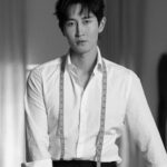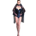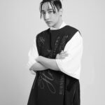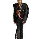 An aggressive, horn-like spike frames a dress with a scooped neckline, while a leather jacket boasts oversized gold scales running down each arm. Having graduated from London College of Fashion with a master’s in menswear, Kwok is passionate about tailoring. In his collection, he offers blazers with exaggerated shoulders, floor-length coat dresses featuring asymmetric hems and bold graphic seams, and jackets with strategic cut-outs that celebrate the female form.