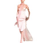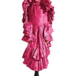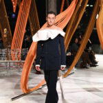 The same year, he became Creative Director at Rochas. His Hong Kong line-up burst forth with bold hues and patterns. Among several tops that encircle the arms, one features feathers around the shoulder line to create a fiery frame. A dress in inky satin features wayward ruffles on the bodice for a dramatic fluttering effect that plays up the sheen of the fabric. de Vilmorin’s confections won’t appeal to everyone, but he’s having fun. And we like that.