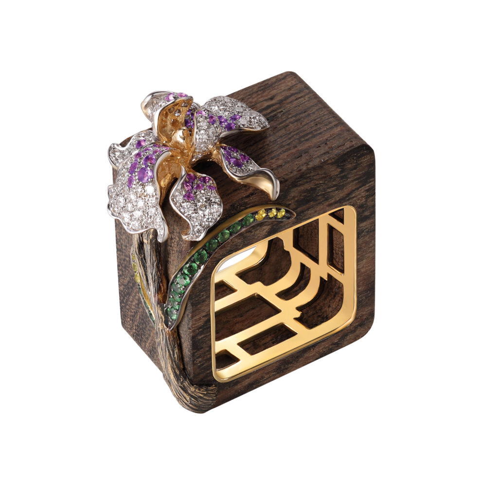 A highlight of the Literati line is the National Flower Square Ring, an ode to Singapore’s Vanda Miss Joaquim orchid. It’s a fitting tribute as this year also marks the house’s 22nd anniversary in Singapore, one of its most important markets outside Hong Kong. The flower symbolises the unity and resilience of the nation, says Dickson Yewn, its founder and creative director. He adds that in many ways, Singapore and Hong Kong are like sisters in that they have managed to create miracles despite having limited land resources.