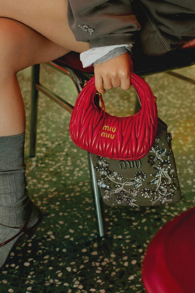 Miu Miu brings the festivities to life with The Encounter (如期而遇), a short film directed by screenwriter and filmmaker, Shujun Wei and featuring Miu Miu brand ambassadors, Liu Haocun and Zhao Jinmai. Set against the backdrop of Yi Lau Yi, a bustling Cantonese tea house in Beijing, the story captures the two actors in a whimsical scene as they are entertained by a local three-piece band. When, almost magically, the musicians and other diners vanish, the playful pair is left to explore the empty space – dancing, creating music, and wandering through a fantastical dreamscape. From oversized sweaters and blouson jackets to jewel-encrusted denim, the featured pieces are perfect for the Year of the Snake.