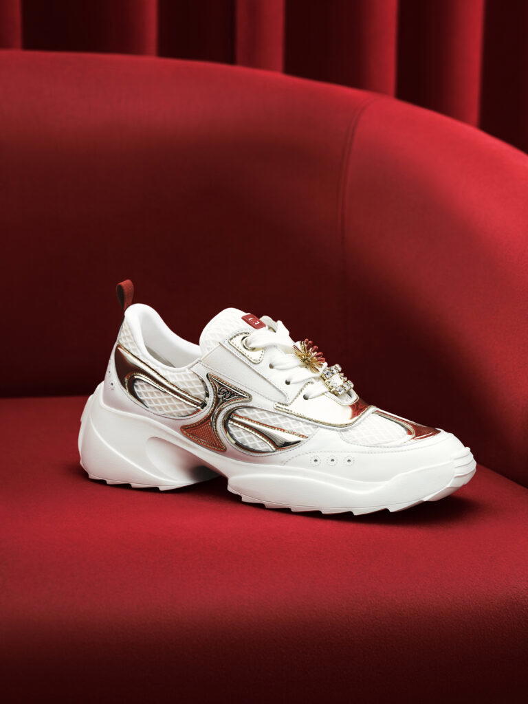 Roger Vivier’s limited-edition capsule marks the Year of the Snake by combining the elegance of a sparkling buckle and the auspicious symbolism of the serpent with a fresh, modern perspective. Designed in Paris by Creative Director Gherardo Felloni, the collection highlights the vibrant red that symbolises joy, prosperity, and good fortune—a color central to Lunar New Year traditions. Our favourites? The Viv’ on the Run sneakers and the red Très Vivier Mary Janes.