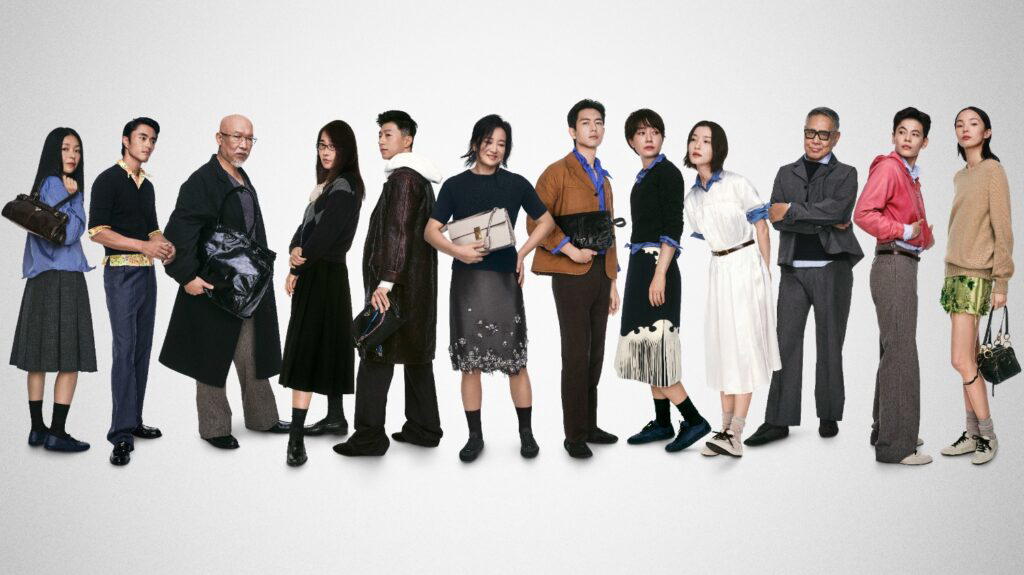 This Chinese New Year, Prada celebrates the Year of the Snake, a powerful source of metaphorical visions. Featuring creative direction by Ferdinando Verderi and photography by Oliver Hadlee Pearch, the visuals feature a snake-like chain of human silhouettes who are interspersed by various real characters either alone or together. For the occasion, Prada brings together a heterogenous cast of people from different walks of life including ambassadors Jia Ling, Li Xian, Ma Long, Ma Yili, Yang Shuyu; art historian Wu Hung; artists Peng Wei, Zhang Enli; architect Rossana Hu; and models Du Juan, Ju Xiaowen, and Zhao Lei. Perfect for festive visitations are the Dangle Bag for women and the Soft Leather Bag in a new green hue for men.