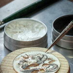 The design begins with a gold base adorned in Grand Feu enamel, a 17th-century technique so rare it’s practised by only a handful of artisans—including one at Chopard’s manufacture. The enamel undergoes laser ablation to reveal a dragon in striking relief. Every detail is a marvel. Its sinuous body gleams with miniature enamel painting, its gold mane and moustache painstakingly hand-engraved. The horns, crafted through micro-marquetry, combine six types of wood, while the bead clutched in its claws and the swirling clouds are carved from luminous mother-of-pearl.