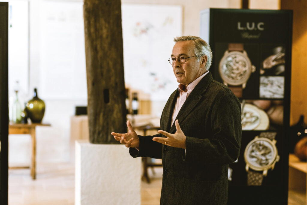 Naturally, his passion for craftsmanship extends beyond horology to viticulture. A childhood memory with his grandfather inspired Scheufele to co-found Le Caveau de Bacchus, a wine shop and wholesale company in Gstaad, Lausanne, and Geneva.