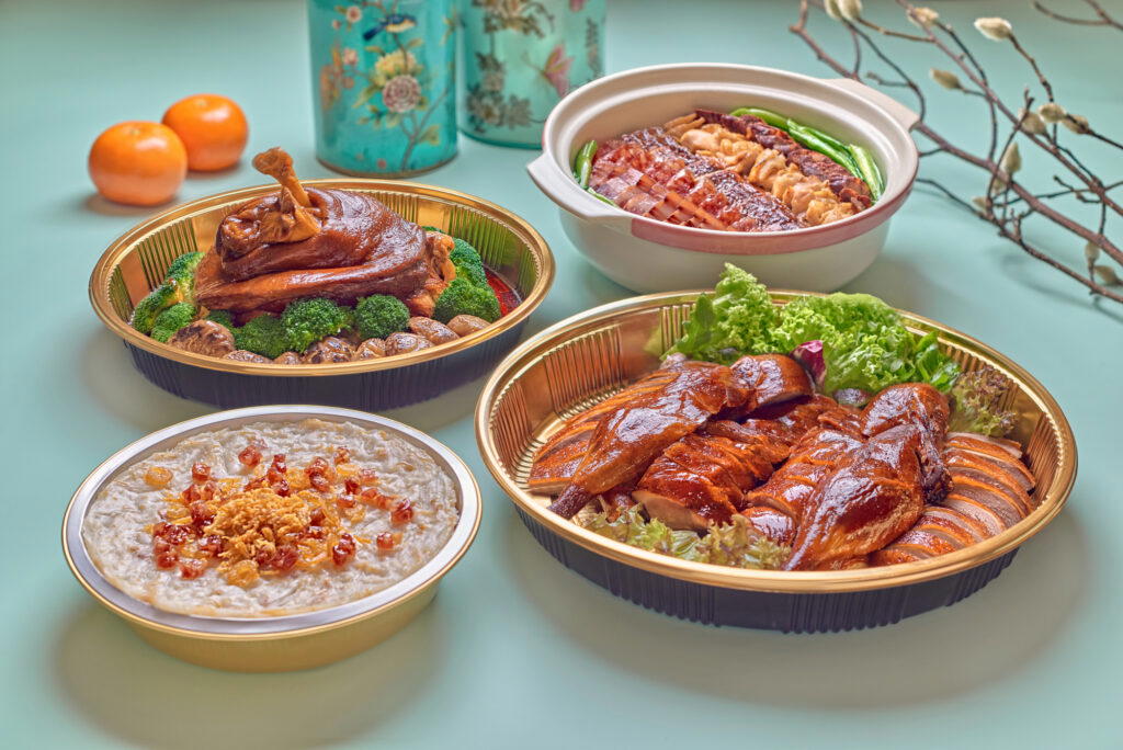 A culmination of Chinese Executive Chef Chung’s knowledge of Cantonese cuisine, each of the restaurant’s six festive dine-in menus showcases delicacies ideal for an indulgent reunion. Notable highlights include Braised Superior Bird’s Nest Soup with Fish Maw and Crab Roe, Alaskan King Crab on Steamed Egg White, Jasmine Tea Smoked Duck, and Steamed Live Soon Hock.