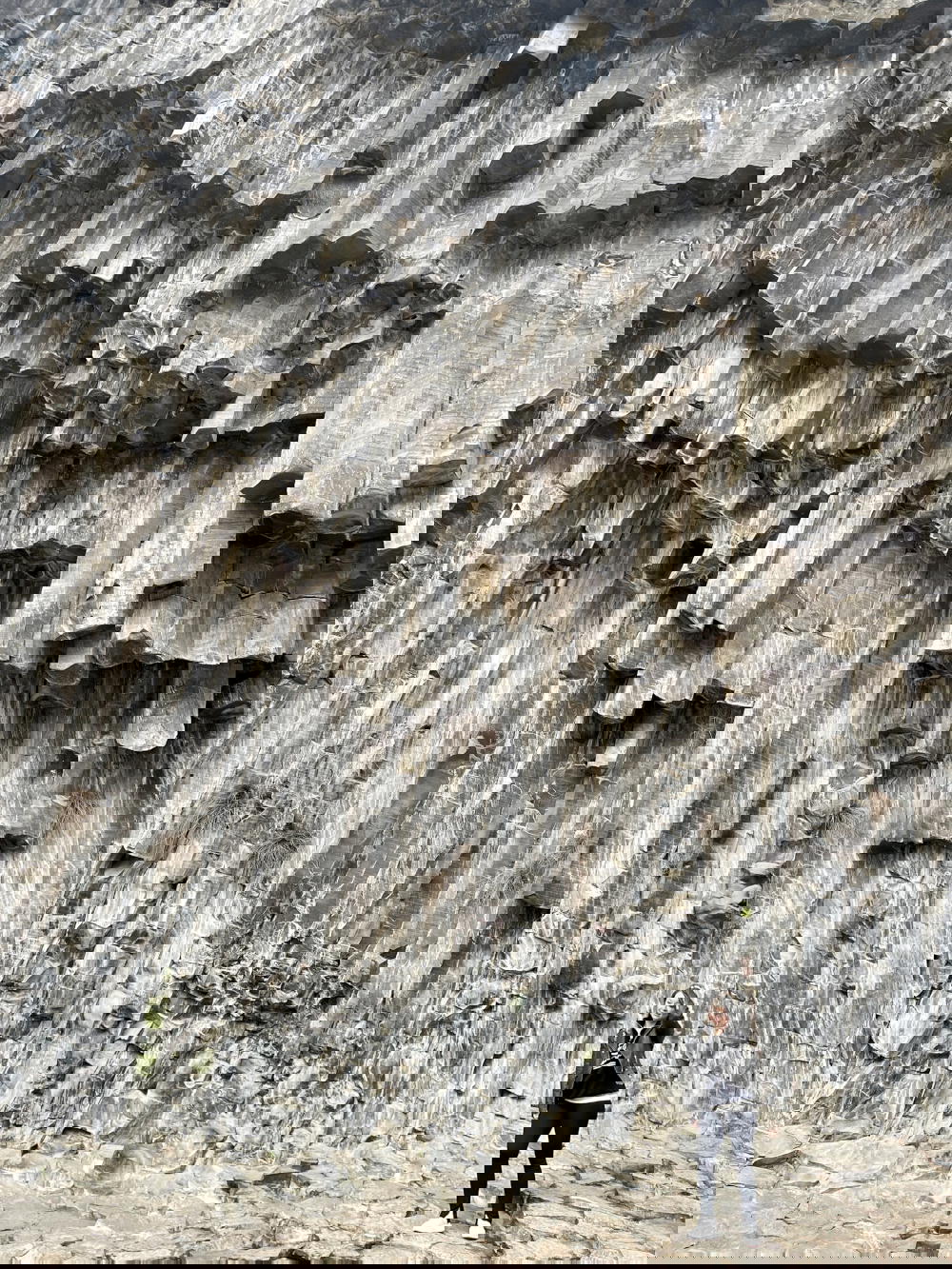 On the way back to the city, I stop at Garni temple, built in the first century in classical Greco-Roman style. Today, only a reconstructed shell of the original structure stands in isolation, overlooking the gorge created by the Azat River. But the views of the surrounding countryside alone are worth this diversion. From the low wall on one side, I can see the faint outline of my next destination: the Garni Gorge.